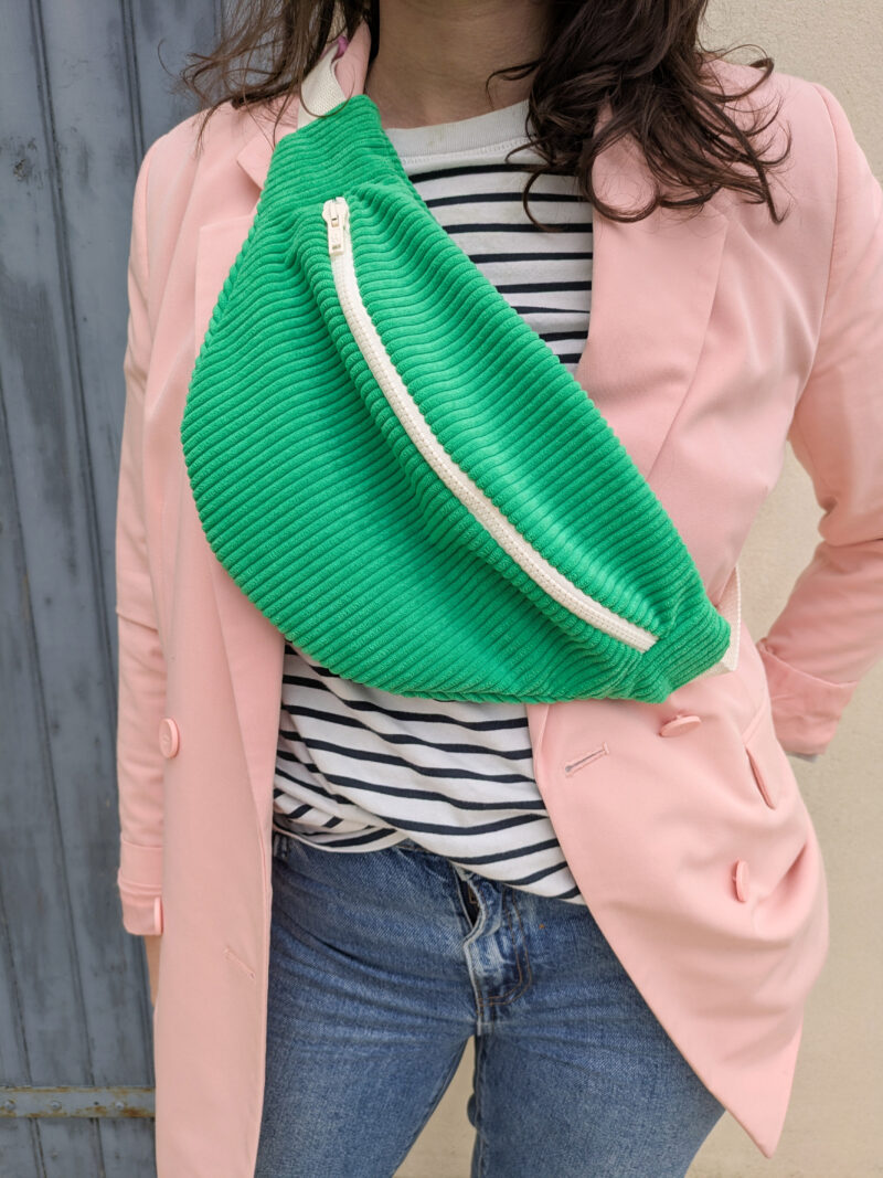 40,00 €Apportez une touche de fraîcheur et d’originalité à vos tenues avec cette banane en velours côtelé vert pomme, entièrement faite main à La Rochelle. Elle est l’accessoire idéal pour allier style et praticité au quotidien, de plus c’est une pièce unique.